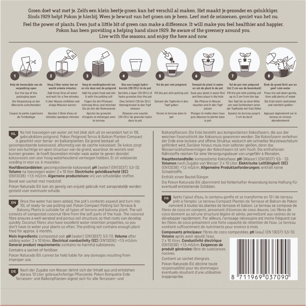 Gebruiksaanwijzing Pokon Potgrond Terras & Balkon Planten Compact 20L