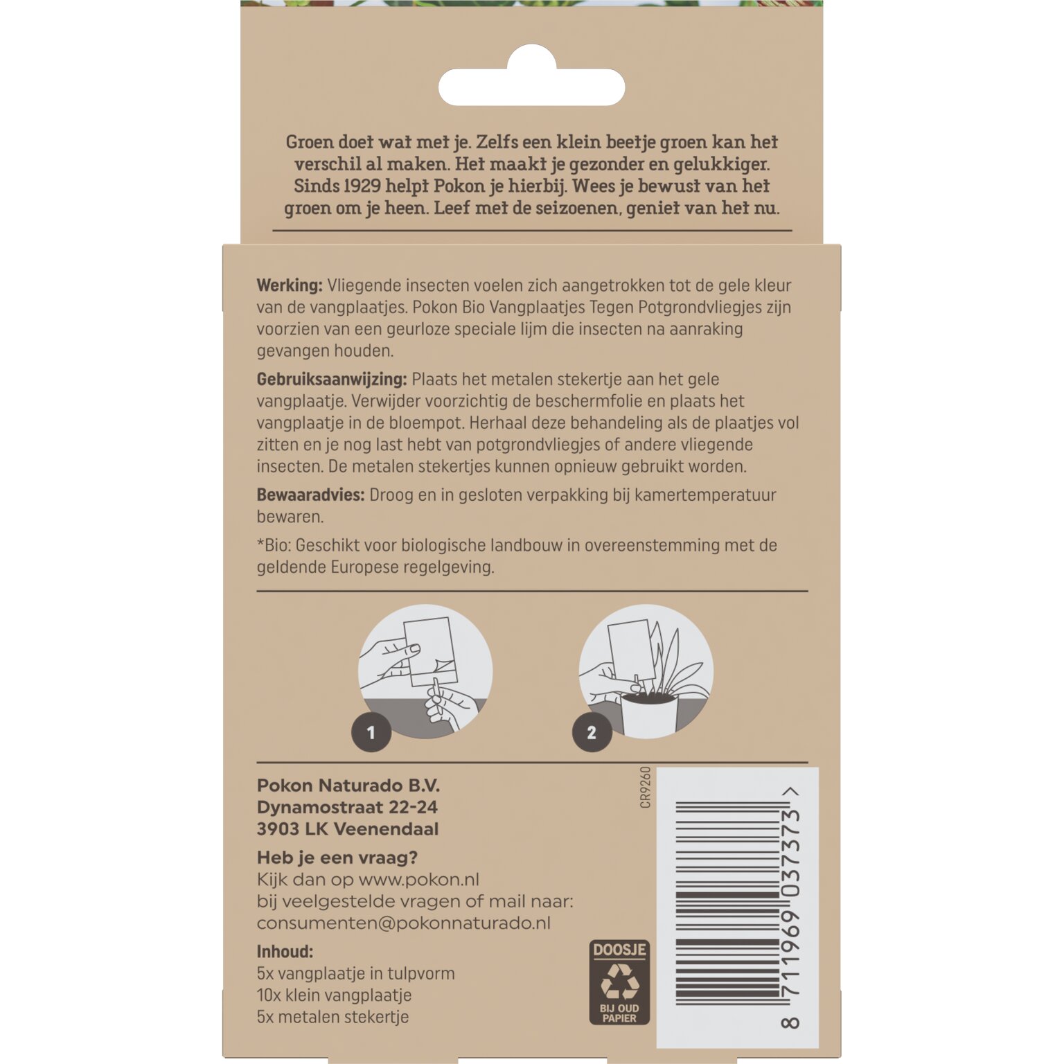Gebruiksaanwijzing Pokon Bio Vangplaatjes tegen Potgrondvliegjes 15 stuks