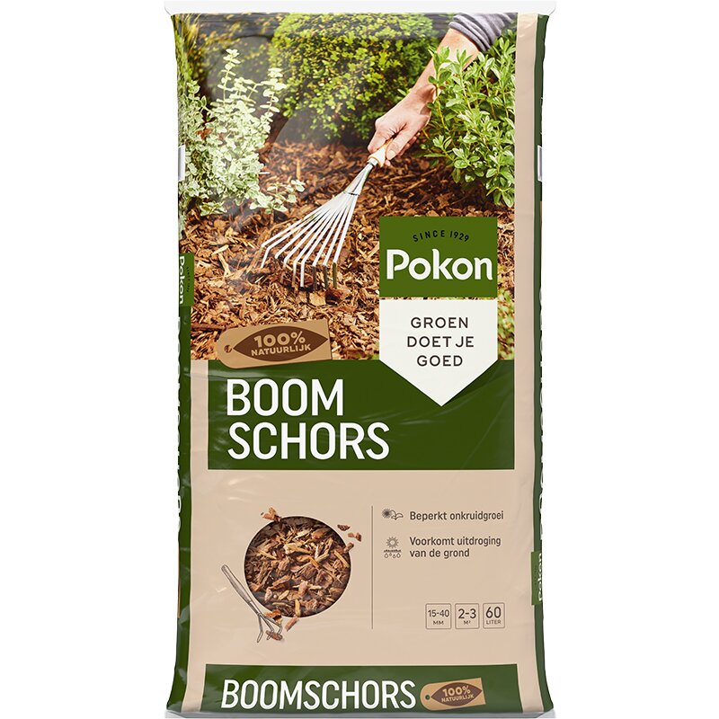 Pokon Verse Boomschors is geschikt als decoratie in borders en voor de aanleg van paden in de tuin. Deze 100% natuurlijke bodembedekker is gemaakt van schors van de grove den en heeft een afmeting van ca. 15-40mm. Boomschors werkt vochtregulerend, waardoor de grond minder snel uit zal drogen.