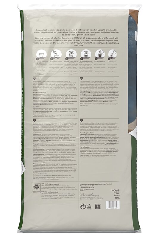 Deze Pokon Potgrond Universeel is een goede voedingsbodem voor je planten. De hoofdbestanddelen zorgen voor een goede mix waarin planten zich goed kunnen ontwikkelen. Zowel in de grond als het bovengrondse deel. Er zit voldoende voeding in voor ca. 60 dagen. De potgrond bevat uitsluitend hoogwaardige grondstoffen, zoals turfstrooisel, tuinturf, kalk en houtvezel. Hierdoor wordt water goed vastgehouden en nemen je planten de voeding goed op.