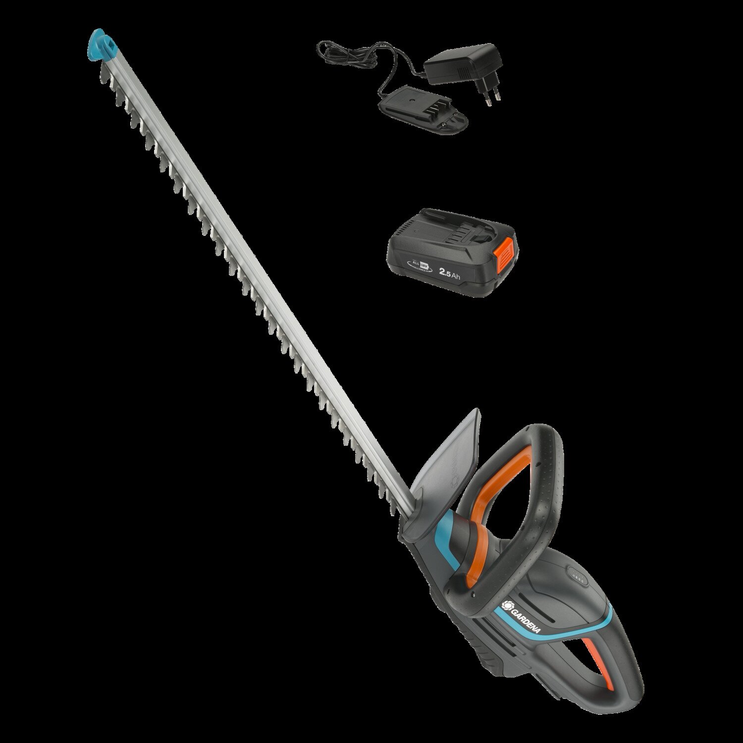 "Handige heggenschaar op accu voor middelgrote heggen. Snoerloos, handig, licht en gebruiksvriendelijk: met de GARDENA accu-heggenschaar ComfortCut 60/18V P4A snoei je middelgrote heggen zonder al te veel moeite. De meegeleverde accu heeft een looptijd tot 56 minuten of tot 188 m² heg. Dankzij een duidelijk zichtbare LED-indicator direct op het gereedschap ben je altijd op de hoogte van het actuele laadniveau. Je weet dus wanneer het tijd is om een pauze te nemen om hem op te laden of een andere accu aan te sluiten. Met zijn ErgoLine-handgreep met geïntegreerde schakelaar ligt de schaar met een bladlengte van 60 cm altijd comfortabel in de hand, in welke positie je ook werkt. De stootbescherming aan de punt van het mes zorgt ervoor dat de mesjes niet beschadigd raken. De bladgeometrie is perfect ontworpen zodat de snede altijd zuiver is en het werk gemakkelijk uit te voeren is - zonder onderbrekingen. We weten dat je onder de indruk zult zijn van de resultaten! Met de ComfortCut is het snoeien van heggen niet langer een vermoeiend, inspannend karwei, maar een klusje dat in een mum van tijd kan worden gedaan. De GARDENA Accu-heggenschaar ComfortCut 60/18V P4A wordt geleverd als een gebruiksklare set met een oplader en een 18V POWER FOR ALL accu. De POWER FOR ALL ALLIANCE is een van de grootste merkoverschrijdende accu-allianties van toonaangevende fabrikanten. De accu is daarom compatibel met tal van andere gereedschappen in huis en tuin - wat betekent dat je er niet meer voor elk product een hoeft te kopen. Je bespaart geld en blijft te allen tijde flexibel! Passion powered by GARDENA - Tuingereedschap op accu dat je de vrijheid geeft om te creëren."