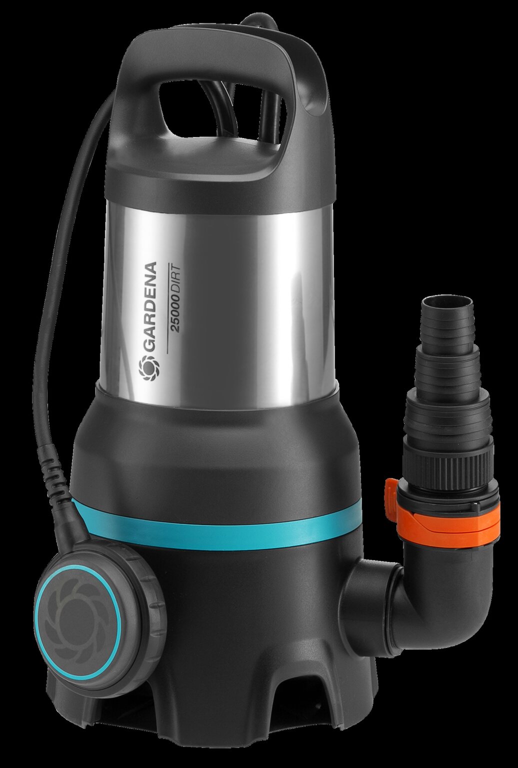 De dompelpomp voor vuil water 25000 van GARDENA, het bekende tuinmerk met meer dan 40 jaar ervaring op het gebied van pompen voor drainage, beregening en huishoudelijk gebruik. Een buitengewoon krachtige dompelpomp met indrukwekkende prestaties, veel vermogen en weinig energieverbruik. Wanneer de kelder is volgelopen na een overstroming of zware regenval, een bouwput vol staat of de vijver in de tuin overloopt, komt de krachtige, energiezuinige en robuuste afwateringspomp in actie om ongewenst water weg te pompen. Met een motor van 1100 W en een maximale opvoerhoogte van 11 m bij een druk van 1,1 bar, kan de pomp moeiteloos ongeveer 25.000 liter vuil water per uur wegpompen. Vuildeeltjes tot maximaal 38 mm doorsnee zijn geen probleem. De pomp kan op intelligente wijze worden geregeld met de instelbare vlotterschakelaar met continu-aan-schakelfunctie. Een modern, intelligent en stijlvol ontwerp met een robuuste roestvrijstalen kap en een duurzaam keramisch assysteem met drievoudige afdichting zorgen voor een gemakkelijke en consistente werking. De praktische handgreep met kabelwikkelaar en kabelhouder maakt veilig transport en stabiele plaatsing van de dompelpomp mogelijk. Bovendien is de dompelpomp voor vuil water 25000 van GARDENA erg veelzijdig. Slangen met een diameter van bijvoorbeeld 32 mm, 38 mm of 50 mm kunnen eenvoudig worden aangesloten dankzij het handige slangaansluitsysteem van GARDENA. Optioneel kan een G1 ½"-schroefdraad worden aangesloten op de pomp, wat zorgt voor meer aansluitmogelijkheden. Dankzij het hoge vermogen behoren met de dompelpomp voor vuil water 25000 volgelopen bouwputten, overstroomde kelders of verwaarloosde vijvers tot het verleden, om maar een paar voorbeelden te noemen. Voel de kracht van GARDENA pompen.