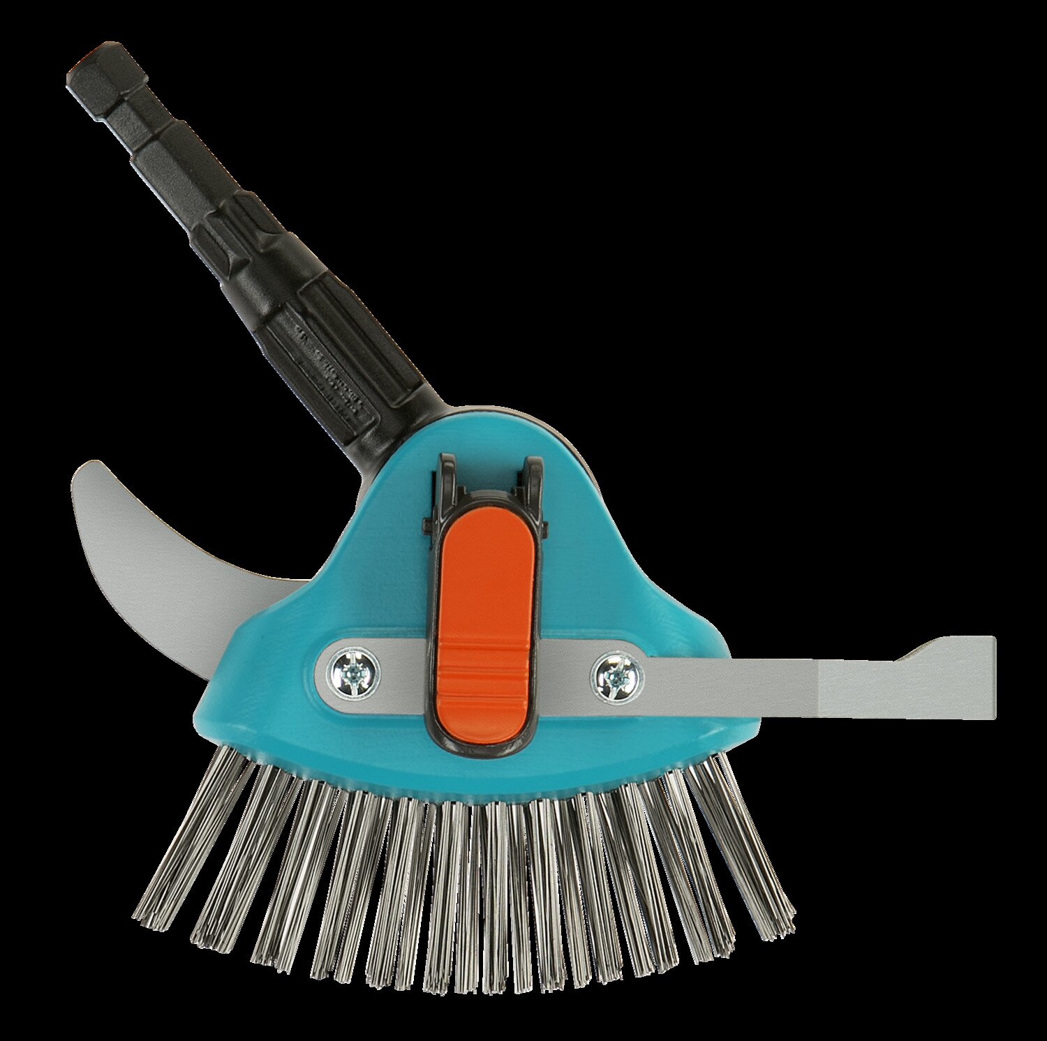 Met de GARDENA combisystem 3in1 Voegenkrabber/borstel verwijder je gemakkelijk onkruid en mos uit je achtertuin, voortuin of oprit. Dankzij de makkelijk verwisselbare accessoires is het GARDENA combisystem flexibel te gebruiken. De Voegenkrabber/borstel kan met alle stelen van het GARDENA combisystem gecombineerd worden en je bevestigt hem door hem op de steel te schuiven en vast te schroeven. GARDENA raadt een steel met een lengte van 130 of 150 cm aan, maar de keuze van de steel hangt ook af van de werkomstandigheden en je lichaamslengte. De betrouwbare aansluiting tussen de voegenkrabber/borstel en de steel zorgt ervoor dat je altijd comfortabel kan werken. De 3in1 Voegenkrabber/borstel combineert 3 gereedschappen in 1: het robuust en dun roestvrijstalen mes laat je precies en grondig werken in bijzonder nauwe spleetjes, zoals nauw aangesloten straatstenen op het terras of in de tuin. Met de driehoekig gebogen roestvrijstalen boog verwijder je onkruid en mos uit bredere voegen. Met de metalen borstels kan je mos bijzonder gemakkelijk verwijderen. Daarna veeg je het verwijderde mos gemakkelijk weg met de borstels. De Voegenkrabber/borstel werkt puur mechanisch, zodat je het milieu efficiënt beschermt. Je kan de roestvrijstalen boog en het roestvrijstalen met gemakkelijk vervangen zodra deze versleten zijn. Berg de Voegenkrabber/borstel op met het combisystem Gereedschapsrek Flex (art.nr. 3505-20). GARDENA geeft 25 jaar garantie op de combisystem 3in1 Voegenkrabber/borstel als je registreert op gardena.com/registration binnen 3 maanden na aankoop. Let your tool family grow. GARDENA combisystem. Verwisselbaar. Duurzaam. Voor al je tuinwerk.
