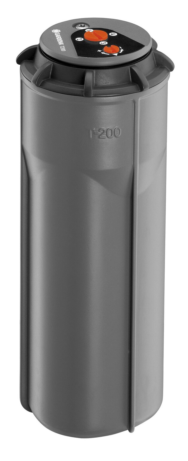 De GARDENA Verzonken turbinesproeier T 200 - als onderdeel van het GARDENA Sprinklersystem - is zeer geschikt voor het besproeien van middelgrote gazons tot 200 m². Waar nodig kan de Verzonken turbinesproeier T 200 worden gecombineerd met de Verzonken turbinesproeiers T 100 en 380 (art. nr. 8201-29 en 8205-29) en de Verzonken zwenksproeier OS 140 (art. nr. 8220). Het bereik is variabel tussen 5 en 8 m voor het afzonderlijke oppervlak instelbaar. De sector die moet worden besproeid kan traploos (zonder gereedschap) op de sproeierkop worden aangepast van 25 tot 360°. Hiermee kunt u kleine sectoren of in een volledige cirkel besproeien. Door de geheugenfunctie gaat de sproeier automatisch terug naar de ingestelde sector, ook als de sproeierkop handmatig is gedraaid. Zo wordt altijd het juiste gebied besproeid. Voor flexibele besproeiing zijn er vier spuitmonden met verschillende toevoersnelheden, die kunnen worden geselecteerd op basis van het te besproeien oppervlak. Dit is vooral belangrijk voor een gelijkmatige besproeiing bij gebruik van meerdere soorten sproeiers en verschillende ingestelde besproeiingsoppervlakken. Het geïntegreerde vuilfilter zorgt voor een ononderbroken werking. Het betrouwbare, zandbestendige turbinetandwiel zorgt voor een lange levensduur. Door de installatie van een Ontwateringsventiel (art. nr. 2760-20) in de leiding is het Sprinklersystem vorstbestendig. Voor aansluiting is er een binnendraad van 1/2" aanwezig.