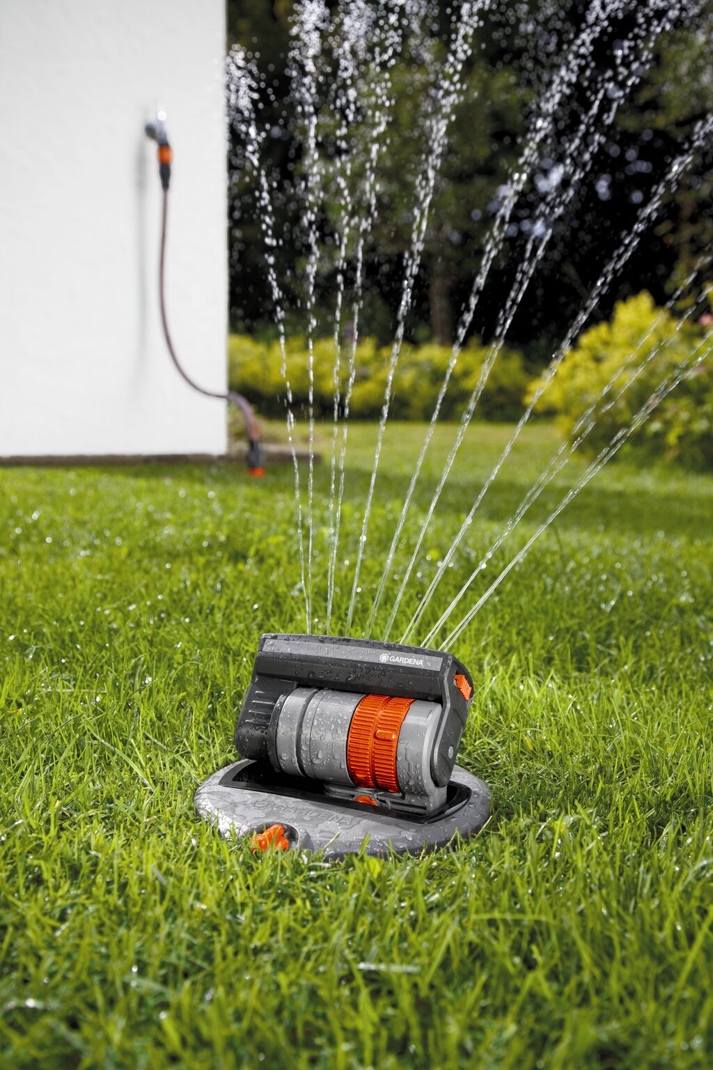 "De complete set bevat de benodigde componenten voor de eenvoudige installatie van een compact besproeiingsysteem voor vierkante en rechthoekige gazons tot 140 m². De verzonken sproeier wordt ondergronds geïnstalleerd, komt omhoog als het het water stroomt en verdwijnt nagenoeg onzichtbaar in het gazon nadat hij zijn werk heeft gedaan. Dankzij een ontwateringsventiel in de leiding is het systeem vorstbestendig en kan dus blijven zitten in de tuin. Vierkante, rechthoekige, maar ook zeer smalle gazons van 2 tot 140 m² kunnen eenvoudig en comfortabel worden besproeid. De sproeibreedte is instelbaar tussen de 1 en 9,5 m en de reikwijdte van 2 tot 15 meter. De waterdoorvoer is traploos regelbaar. Dankzij de variabele instelmogelijkheden, kunnen zelfs de kleinste hoekjes en smalle stroken in detuin besproeid worden. 16 flexibele precisie sproeimondjes zorgen voor een gelijkmatige waterverdeling en een fijnmazig vuilfilter zorgt voor een betrouwbare werking. De GARDENA verzonken zwenksproeier OS 140 heeft een 3/4 ""binnendraad en kan op één leiding gecombineerd worden met de GARDENA verzonken turbinesproeiers T 100, T 200 of T 380. Een uitbreiding van het systeem kan gepland worden met de online planner op www.gardena.nl. Inhoud van de complete set: 1 x Prof-System aansluitset, 2 m Classic slang 19 mm (3/4 ""), 1 x aansluitdoos, 20 m aanvoerbuis 25 mm, 1 x verbindingsstuk 25 mm x 3/4"" binnendraad, 1 x T-stuk 25 mm x 3/4"" binnendraad, 1 x ontwateringsventiel, 1 x L-stuk 25 mm x 3/4"" buitendraad, 1 x verzonken zwenksproeier OS 140."
