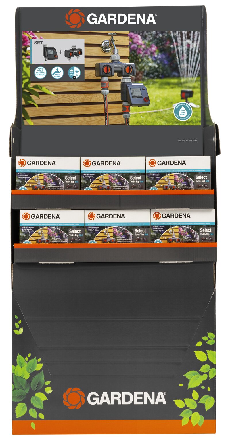 Met de GARDENA Besproeiingscomputer Select kan de besproeiing flexibel en individueel worden gepland. Er kunnen maximaal drie verschillende en onafhankelijke schema's worden gemaakt. De bediening werkt op batterijen (1 x 9 V niet inbegrepen) en wordt rechtstreeks op de kraan of op de GARDENA Twin-Tap Connector aangesloten, waardoor het mogelijk is om tegelijkertijd twee accessoires op één kraan aan te sluiten. De GARDENA besproeiingscomputer kan eenvoudig worden bediend met alleen een draai- en drukschakelaar voor het selecteren van de gegevens en ter bevestiging. Een goed leesbaar LC-display toont alle instellingen in één oogopslag. De weerbestendige bedieningseenheid kan worden verwijderd. De Water Control Select kan worden gebruikt in combinatie met een GARDENA bodemvochtigheidssensor om de tijdgebaseerde irrigatie te optimaliseren.