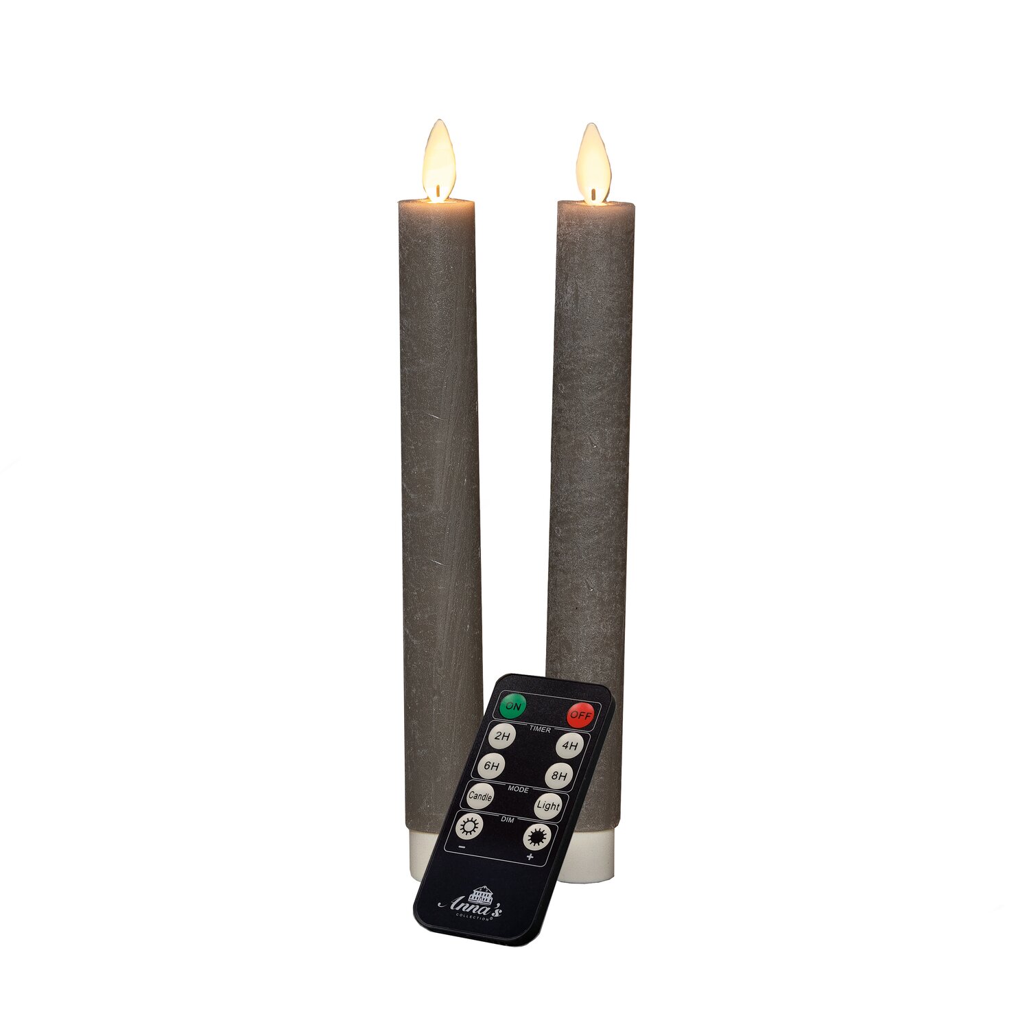 Deze taupe LED-dinerkaarsen zorgen voor een warme, rustige uitstraling en hebben een realistisch bewegende vlam.