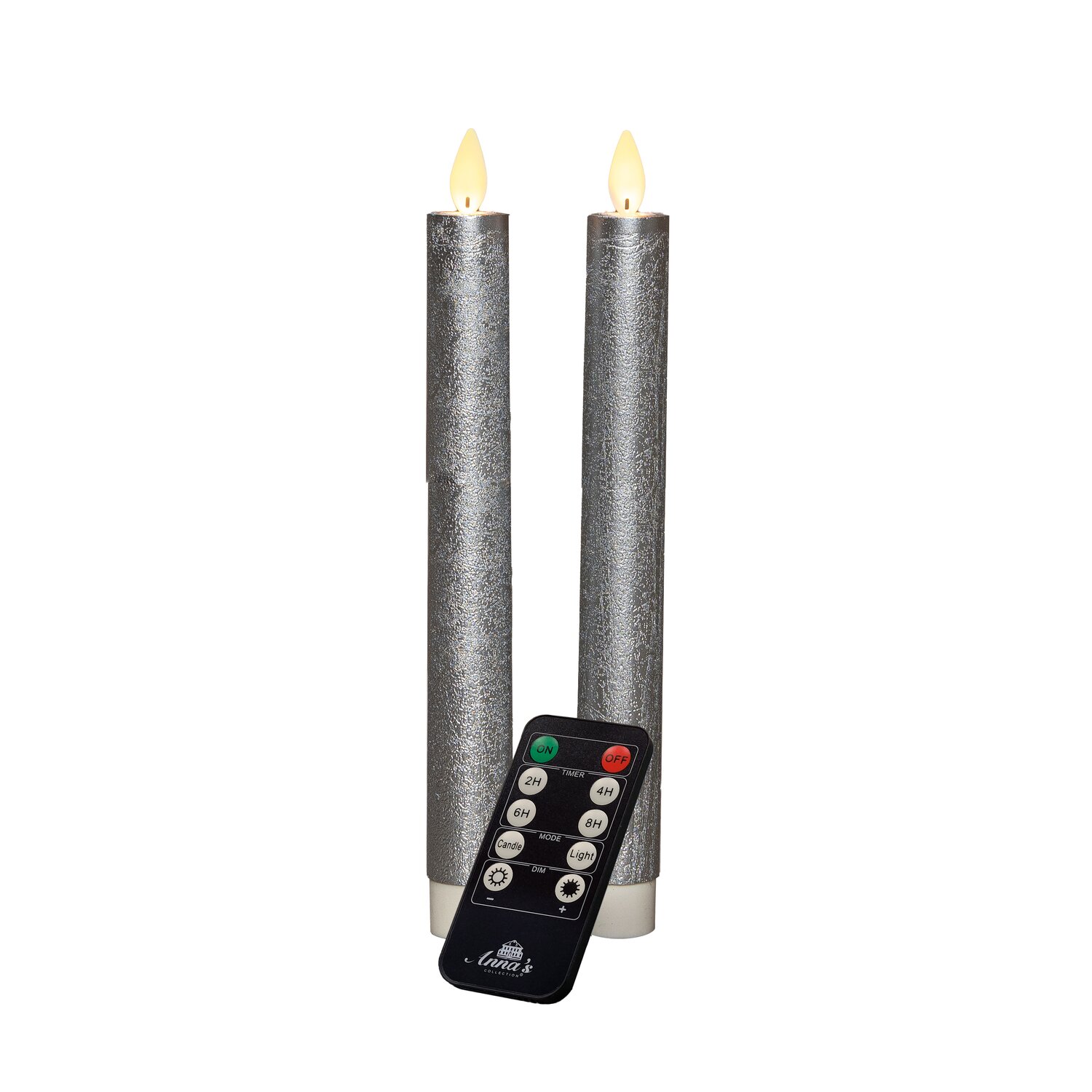 Anna’s Collection 2st. LED Rustiek wax Diner kaars Zilver H23 cm