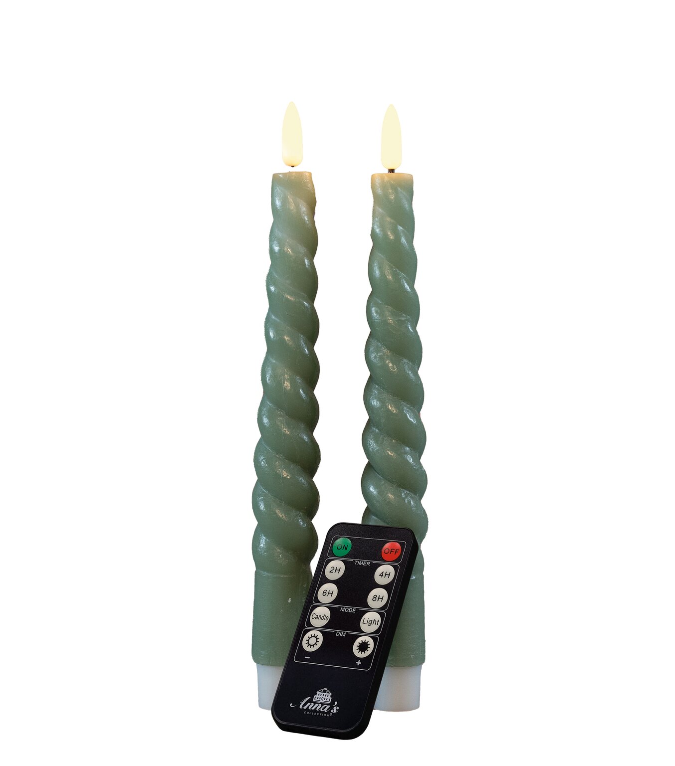 Deze jadegroene swirl LED-dinerkaarsen geven een frisse, moderne uitstraling met een zachte bewegende vlam.