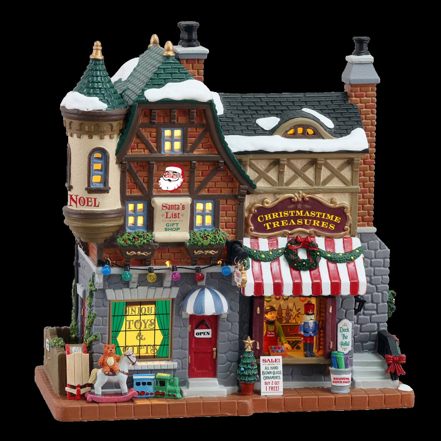 Een echte speelgoedwinkel kan natuurlijk niet ontbreken in jouw Lemax kerstdorp. De Lemax Santas list toy shop met verlichting hoort bij de serie Caddington Village en maakt jouw dorp helemaal compleet.