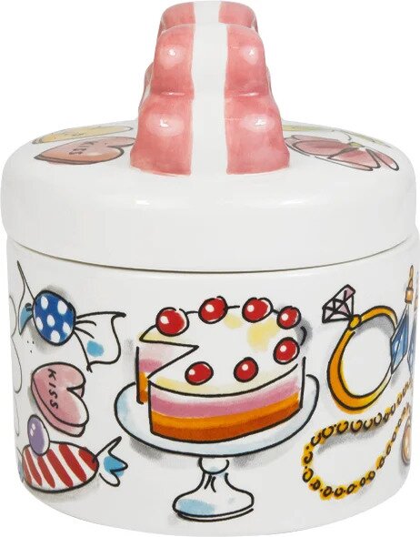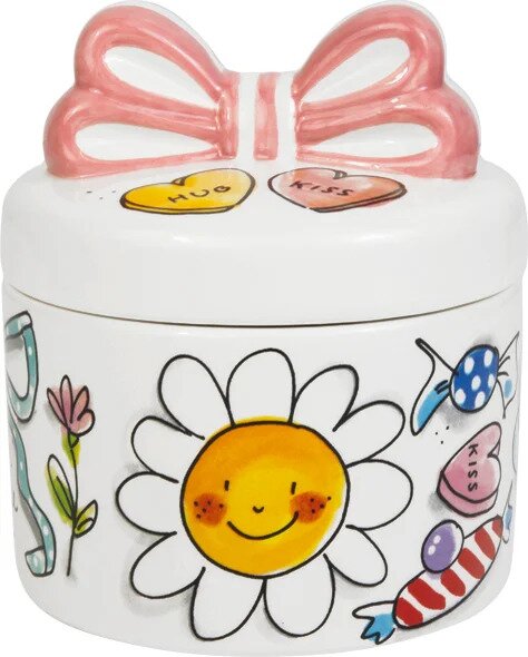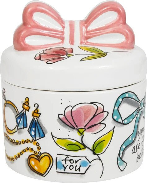 Dit schattige sieradendoosje van Blond Amsterdam is een echte eyecatcher op je kaptafel of nachtkastje. De zachte kleuren, speelse illustraties en de roze strik bovenop geven het doosje een lieve en persoonlijke uitstraling. Ideaal om ringen, oorbellen en andere kleine schatten netjes in op te bergen.