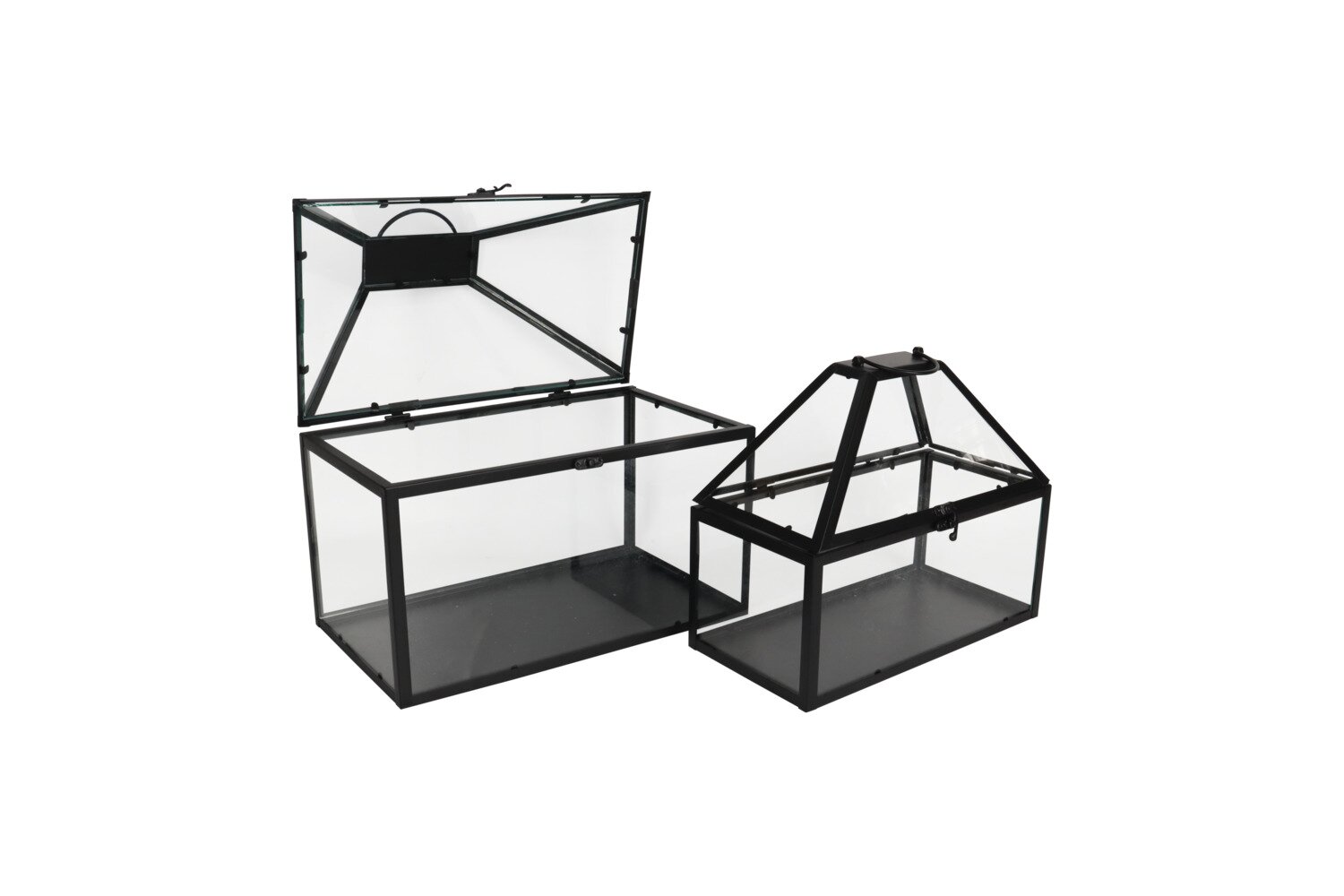 Het huisvormige ontwerp voegt karakter en speelsheid toe aan je interieur. Plaats er kleine kruiden of bloeiers in en creыer een mini-tuin die zowel praktisch als decoratief is. Het zwarte frame vormt een mooi contrast met het groen van je planten en past goed bij diverse tuinstijlen. Een charmante, compacte kas die je planten een speciale plek geeft en tegelijk een stijlvolle decoratie vormt.