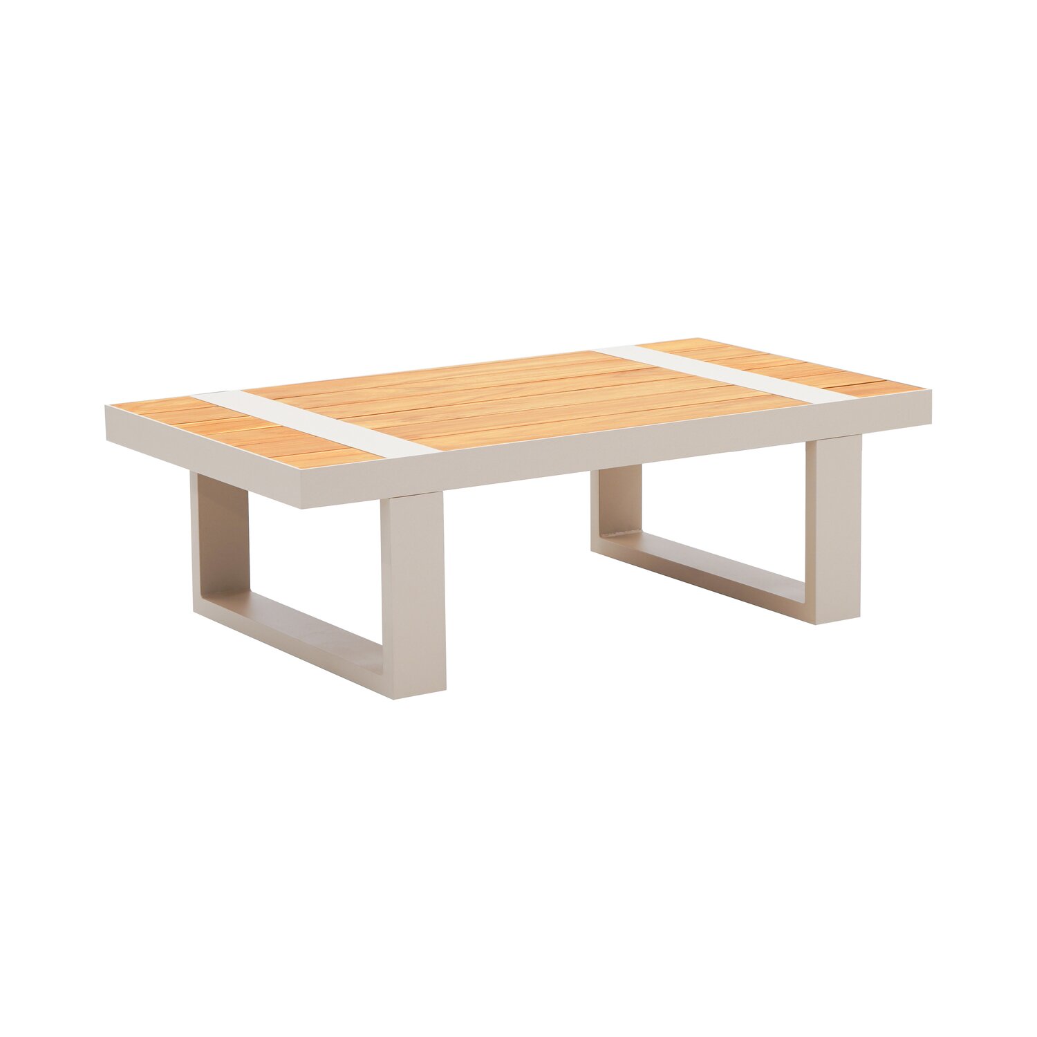 Het beige aluminium frame en het teakhouten tafelblad stralen tijdloze elegantie uit. Bovendien zijn het duurzame materiaal die de tand des tijds zonder kleurscheuren doorstaan. De salontafel is perfect te combineren met andere meubels uit de Laos serie, waardoor je een tijdloze eenheid creëert in je buitenruimte.