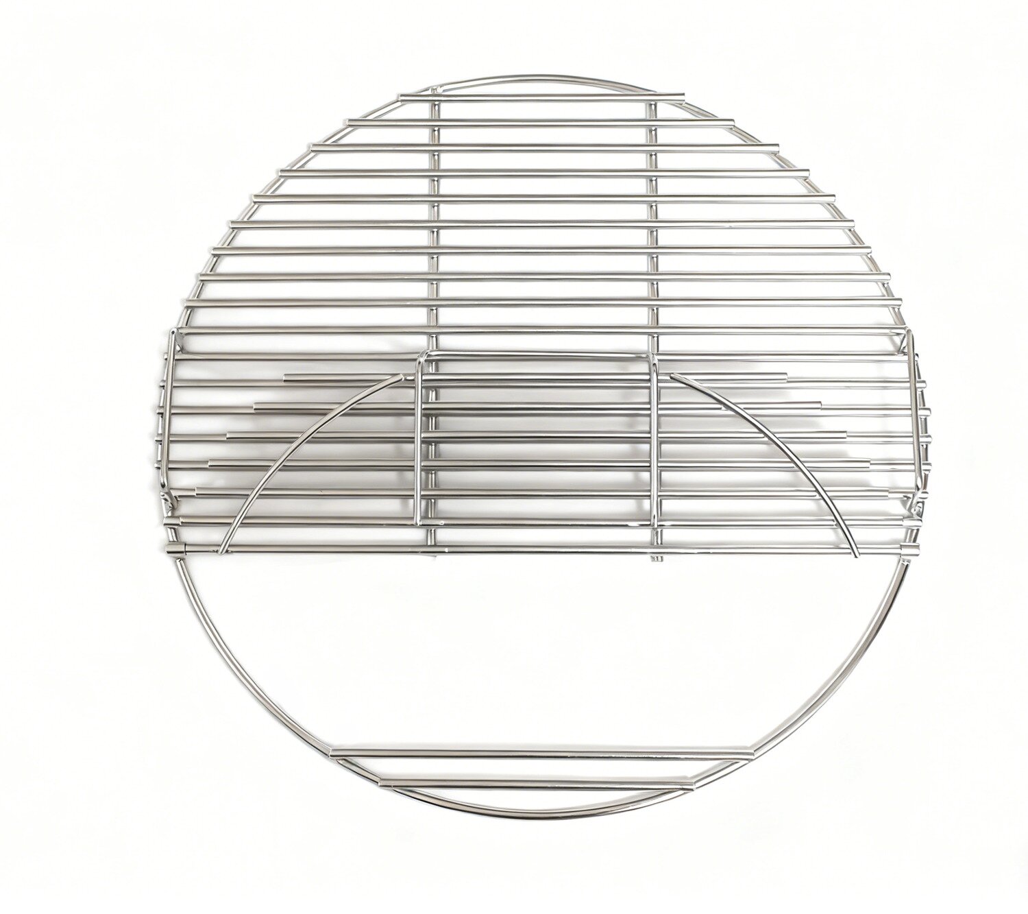 Het Scharnier rooster RVS - large van Maestro is speciaal ontworpen voor de Kamado large (21,5 inch) en biedt ultiem gemak tijdens het grillen. Het slimme scharniermechanisme zorgt ervoor dat je het rooster eenvoudig kunt openen zonder het volledig op te tillen, zodat je veilig en gemakkelijk gerechten kunt toevoegen, draaien of verwijderen. Dit voorkomt morsen van kolen en saus, en bespaart tijd tijdens het barbecueën. Het rooster is vervaardigd van hoogwaardig roestvrij staal, wat zorgt voor uitstekende warmtegeleiding en een lange levensduur.