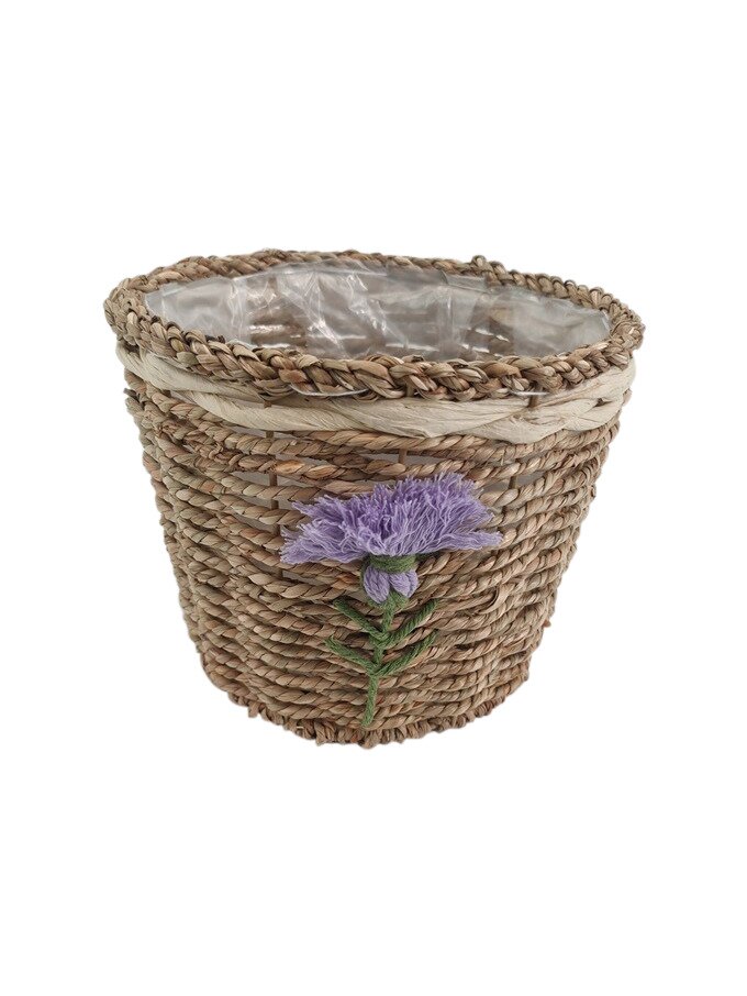 Dankzij de metalen versteviging behoudt de mand zijn vorm en staat hij stevig. Aan de binnenkant is de mand voorzien van een plastic liner, waardoor hij geschikt is om direct een plant in te plaatsen zonder dat vocht door de mand heen trekt. Ideaal voor bijvoorbeeld lavendel, viooltjes of andere vrolijke lentebloeiers.