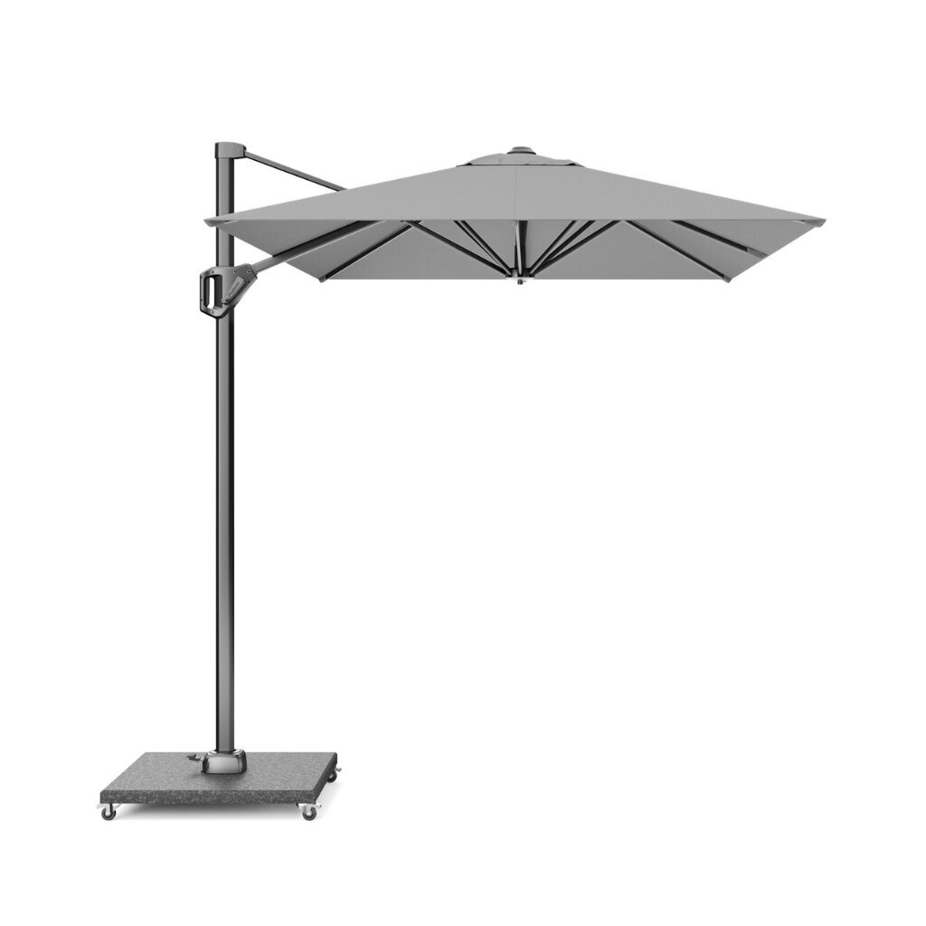 Zweefparasol Voyager T¹ 300x200 lichtgrijs. Modern design. Uiterst stabiel. Eenvoudig in gebruik. Achterwaarts kantelbaar en 360° draaibare voet. Polyester doek.