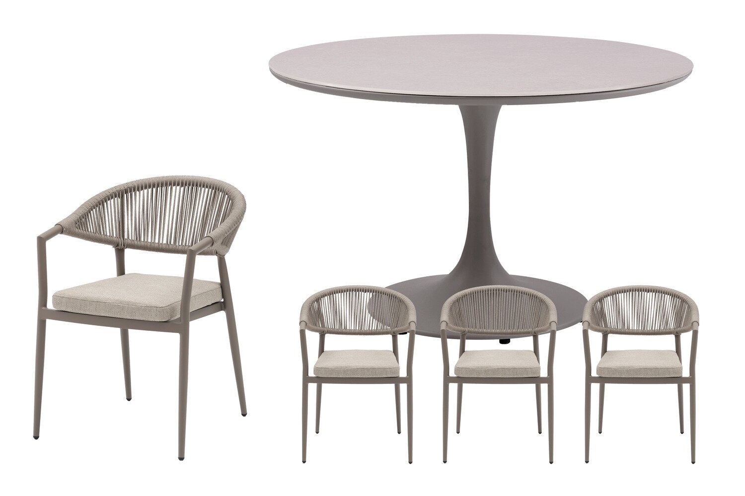 Met de Bo ronde dining set voor 4 personen van Royal Seasons® creëer je eenvoudig een complete en stijlvolle buitenopstelling. Comfort en gebruiksgemak staan hierbij centraal.