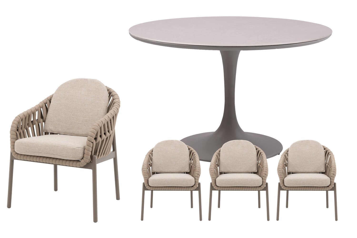 Doha ronde dining set voor 4 personen van Royal Seasons® combineert een moderne uitstraling met duurzame materialen, waardoor een onderhoudsvriendelijke en stijlvolle tuinset ontstaat.