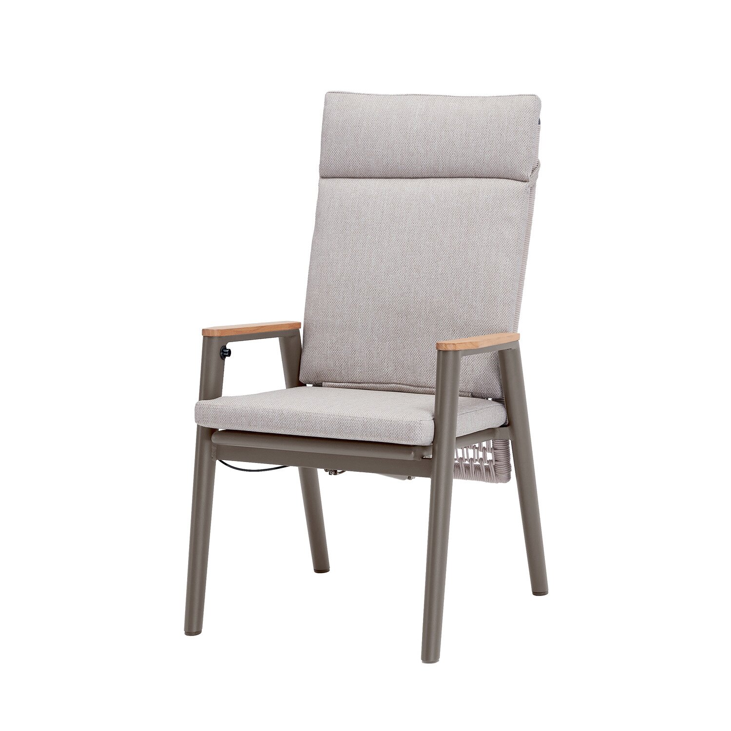 De Jura dining tafel vormt het centrale middelpunt van de set en is opgebouwd uit een espresso aluminium frame met een naturel sintered stone tafelblad. Dit zorgt voor een stabiele en duurzame basis. Met afmetingen van D 120 x H 74 cm is er voldoende ruimte om comfortabel te dineren.