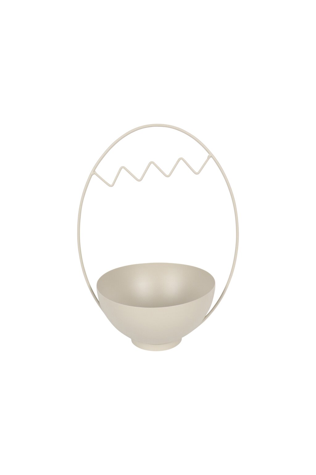 Het metalen schaaltje heeft een open, speels frame in de vorm van een paasei en is uitgevoerd in een zachte witte tint. Met afmetingen van D 16 x H 29 cm is dit formaat ideaal voor kleinere lekkernijen zoals chocolade-eitjes, snoepjes of geschilderde eieren. Dankzij het draagbare ontwerp zet je het schaaltje eenvoudig neer waar je maar wilt: op tafel, in de keuken of als onderdeel van een paasdecoratie. Het luchtige ontwerp zorgt ervoor dat het schaaltje niet zwaar oogt en moeiteloos past in diverse interieurstijlen.