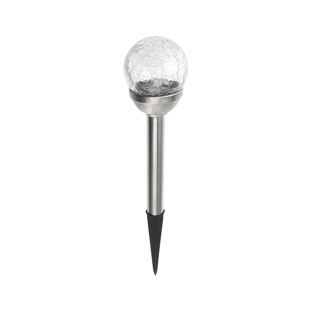 Het craquelé glasontwerp zorgt voor een uniek lichtpatroon dat een speels effect creëert, terwijl het hoogwaardige roestvrij staal (RVS) zorgt voor duurzaamheid en een moderne uitstraling. Dankzij de geïntegreerde zonnecel laadt de lamp zichzelf overdag op en gaat hij automatisch aan bij schemering, zonder dat je je zorgen hoeft te maken over bedrading of stroomgebruik.