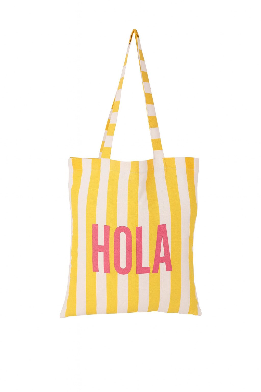 De Totebag Hola geeft je outfit direct een zonnige touch. De tas heeft een ruim formaat en is ideaal voor boodschappen, werk, strand of een dagje weg.